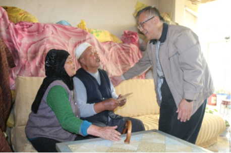 王玉輝書記一行在大通縣石山鄉(xiāng)黨委副書記胡懷強、集團派駐第一書記張秉瑜的陪同下,首先來到兩戶重點幫扶對象的家中進行幫扶慰問。貧困戶馬得倉患慢性腎炎和高血壓,其妻馬尕奴子患多種慢性病,年老體衰,沒有勞動能力,生活十分困難。貧困戶宗統(tǒng)林患嚴重腰間盤突出疾病,兒子白血病去世,給貧困的家庭背負著20萬左右的債務。王玉輝書記對這兩戶因病致困特困戶的生活情況非常關(guān)注,詳細地詢問了他們的家庭基本情況和面臨的困難,了解了集團駐村扶貧工作干部開展扶貧工作的情況。親切的話語貼近了與貧困群眾的心,貧困戶們握著他的手嘮著家常,愉快地說起了現(xiàn)在的生產(chǎn)生活情況和對未來生產(chǎn)生活的想法憧憬,所到之處時時傳來歡聲笑語。