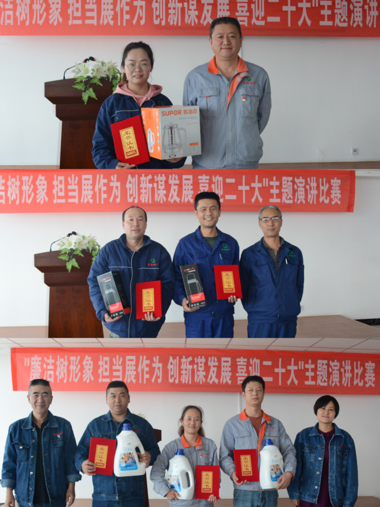 (物產(chǎn)工投公司訊 任蕊/文攝)為凝聚物產(chǎn)工投公司“清正廉潔、和諧友好、綠色低碳”的經(jīng)營發(fā)展最大合力,以優(yōu)異成績迎接黨的二十大勝利召開。10月15日,公司黨委、行政和工會、團(tuán)支部舉辦了“廉潔樹形象 擔(dān)當(dāng)展作為 創(chuàng)新謀發(fā)展 喜迎二十大”主題演講比賽。公司黨委書記、董事長張允忠同志出席演講比賽并講話。
