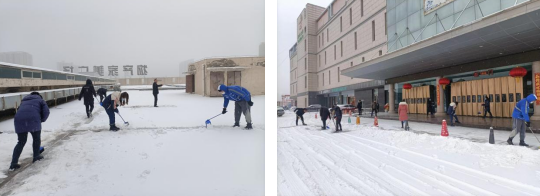(物產(chǎn)現(xiàn)代物流公司 訊 汪國敏/文攝)因近日連續(xù)性降雪,物產(chǎn)家美廣場周邊道路及商場屋面積雪嚴重,且由于持續(xù)低溫,已形成結(jié)冰,給商戶及周邊群眾通行帶來極大不便,屋面積雪消融引起房屋滲水存在安全隱患。2月13日一早,現(xiàn)代物流公司黨支部聯(lián)合團支部,組織“黨員先鋒隊”和“青年突擊隊”清除屋面及商場周邊積雪,贏得了職工群眾點贊。