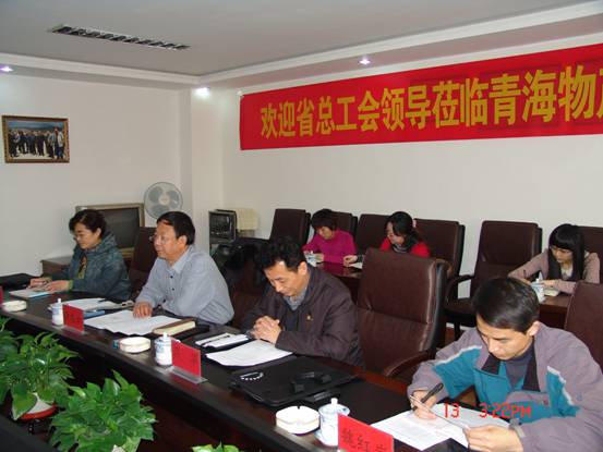 2012年12月13日下午,省總工會(huì)第六考核組組長、省總副巡視員兼法律保障部部長李忠云、考核組成員、省總機(jī)關(guān)黨委專職副書記呂華、考核組成員、省總組織部副調(diào)研員姬紅捷、考核組成員、省總經(jīng)濟(jì)部魏紅巖一行蒞臨青海物產(chǎn)集團(tuán),對(duì)物產(chǎn)工會(huì)2012年度工作開展情況進(jìn)行考核。